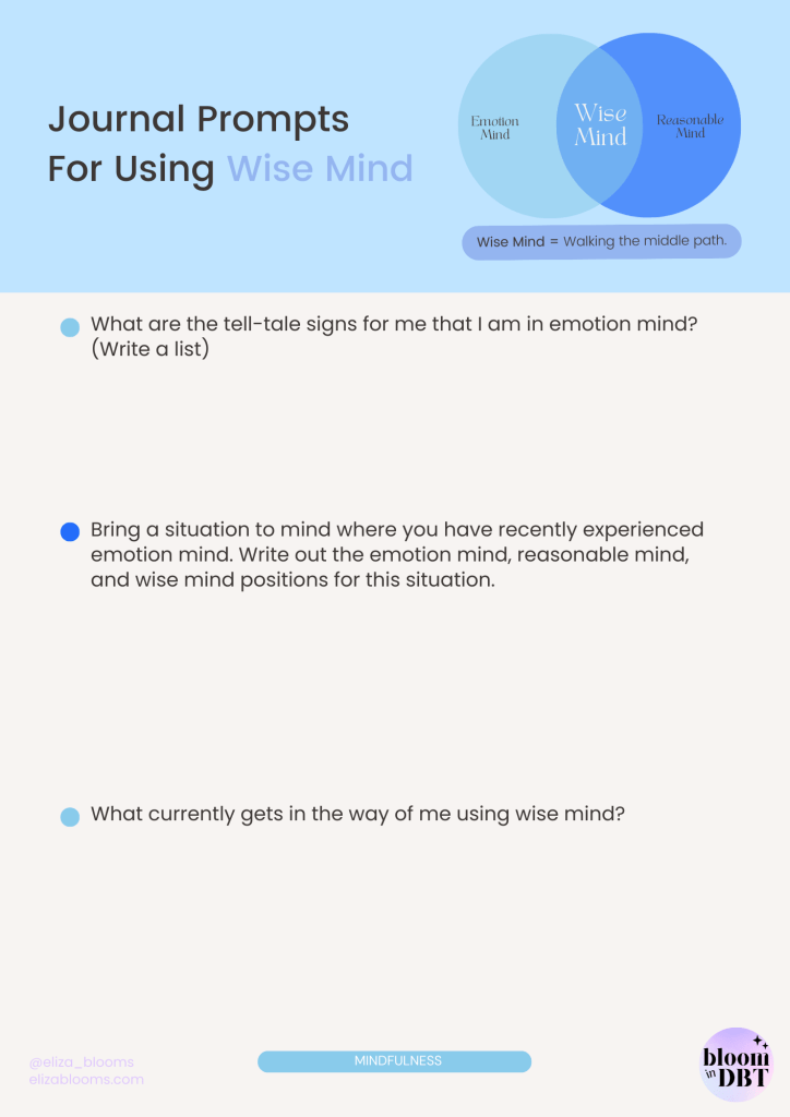 Journal prompts for using DBT Wise Mind