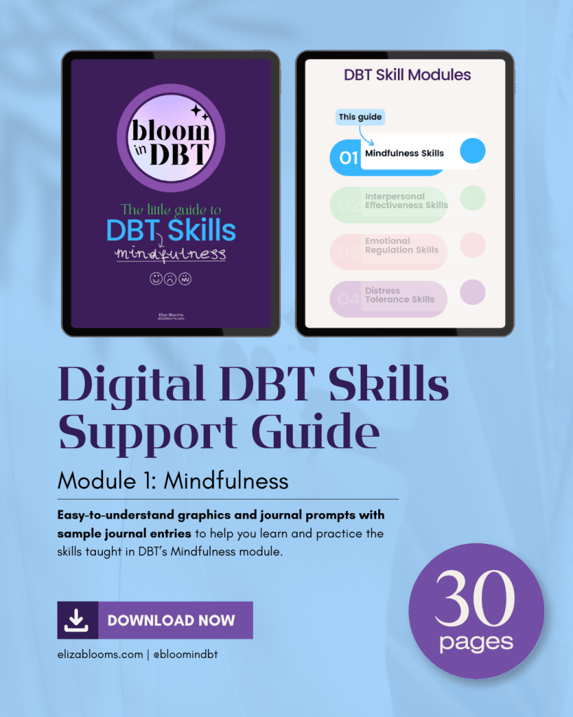There’s no one right way to use DBT, so find what works for you. Come back to these resources whenever you feel dysregulated, disconnected, or even just curious. Start small, stay consistent, and give yourself the grace to try again, one day at a time.
